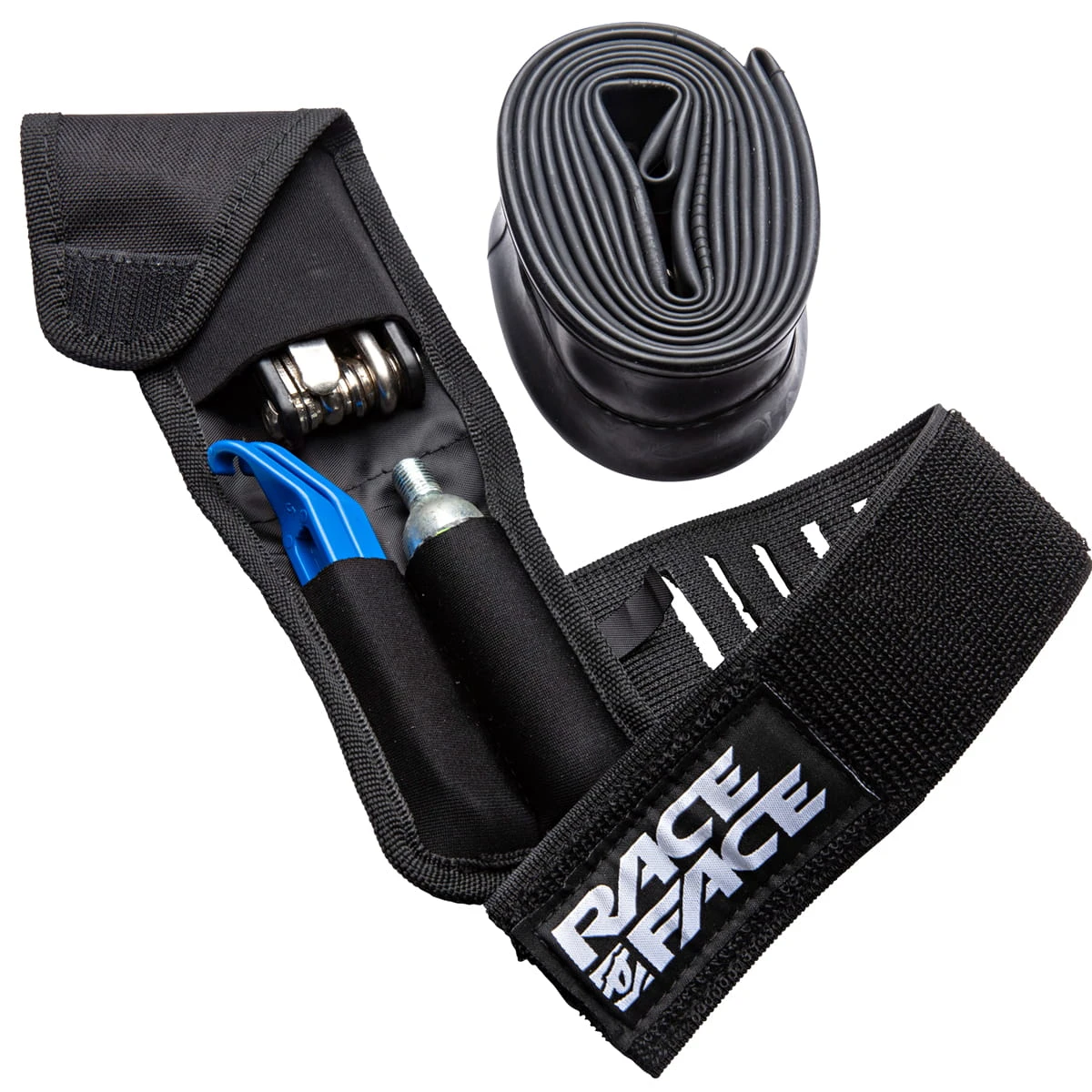 - Fächer für eine CO2 Kartusche, Reifenheber, Multittool und Schlauch