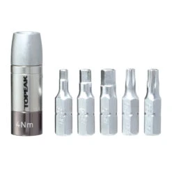 Diese super kompakte Drehmomenthülse (4 Nm, 5 Nm oder 6Nm) macht aus jedem Mini-Tool mit 5 mm Innensechskantschlüssel einen vollwertigen Drehmomentschlüssel! Das enthaltene Transport Case bietet Platz für eine Hülse und die 5 wichtigsten Bits (3 mm/4 mm/5 mm/T20/T25). Mit diesem Set ist stets das richtige Anzugsmoment für Schrauben von Anbauteilen garantiert und teure Carbon Teile werden vor Beschädigung geschützt.
